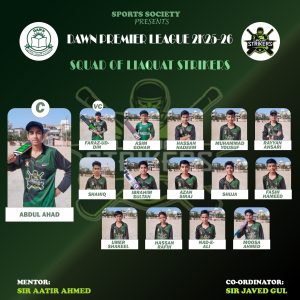 Dawn Premier League 2025-26 Posted by admin Dawn Premier League 2025-26 | Squads Unleashed! Presenting the powerhouses of Dawn Premier League: Sir Syed Warriors Liaquat Strikers Quaid-e-Azam Gladiators Iqbal Shaheens admin No comment yet! You will be the first to comment. Add Comment: Cancel ReplyYour email address will not be published. Required fields are marked *